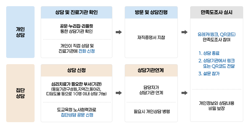- 진료기관: 공감정신건강의학과 등 23개원 - 내용 - 개인상담: 업무, 대인관계, 정서ㆍ심리 등으로 상담이 필요한 교육공무직원