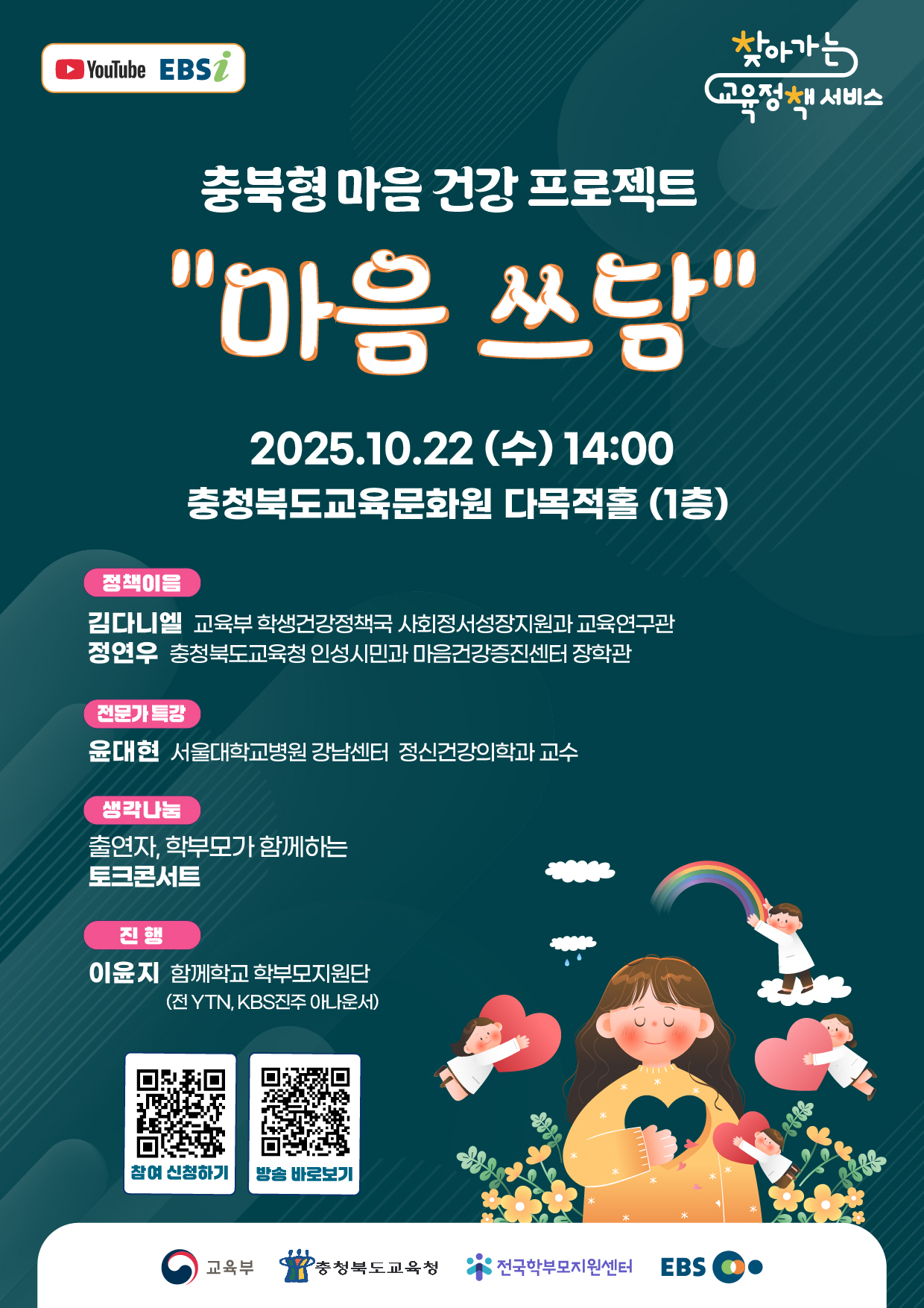 2025년 학부모 대상 찾아가는 교육정책 서비스( 충청북도) 개최 안내-유튜브 시청 가능