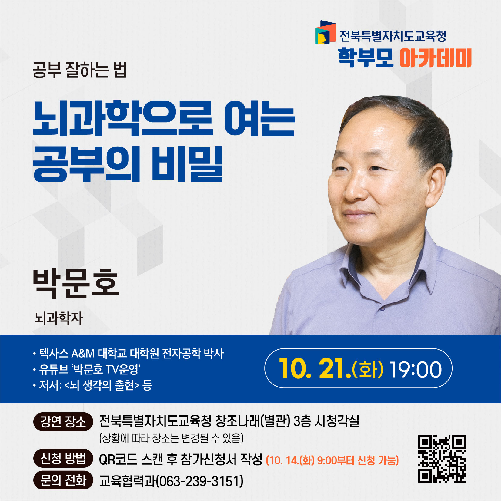 10.21.(화) 학부모 아카데미 신청 안내_뇌과학으로 여는 공부의 비밀(박문호 강사)