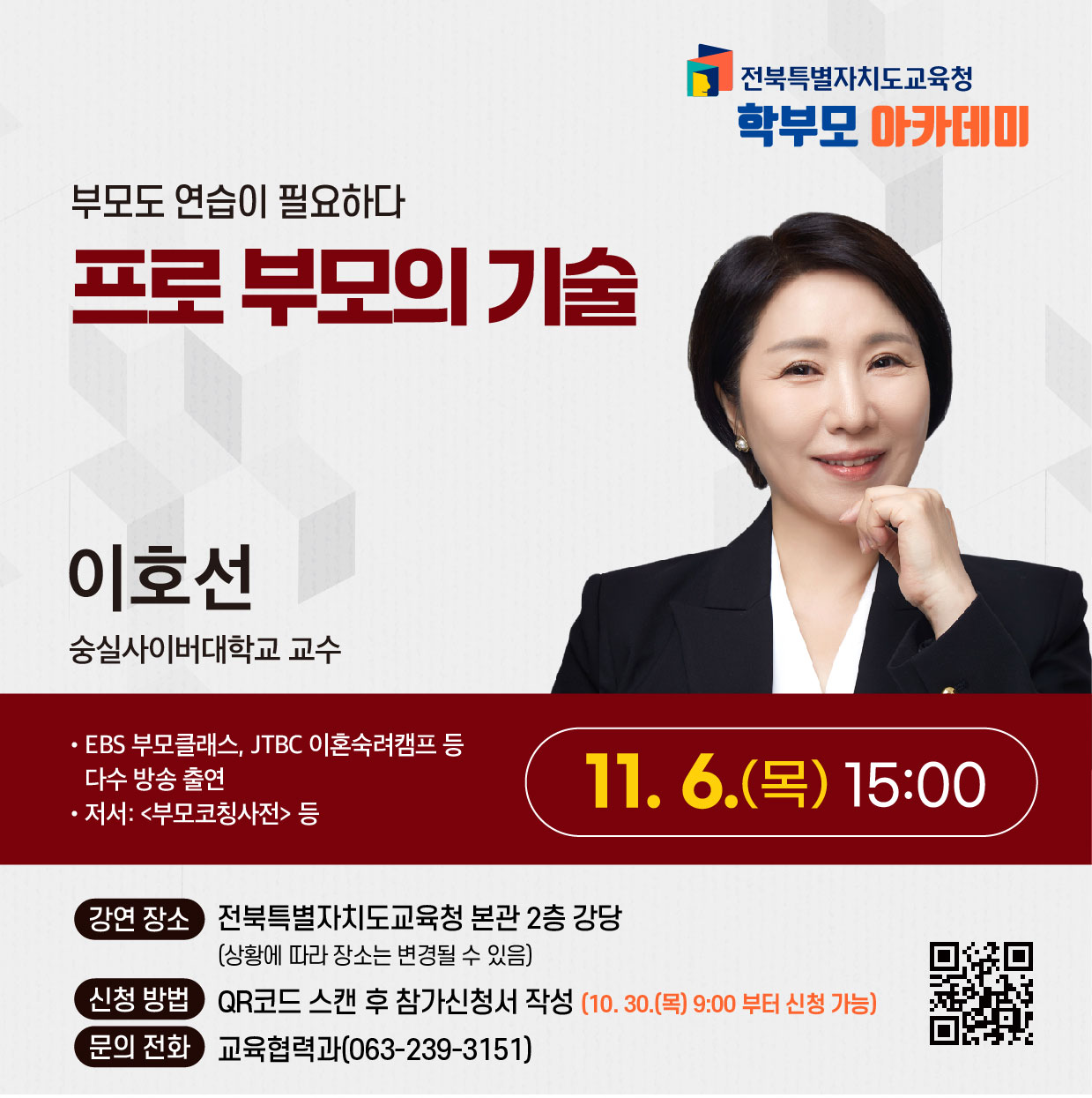 11.6.(목) 학부모 아카데미 신청 안내_프로 부모의 기술(이호선 강사)